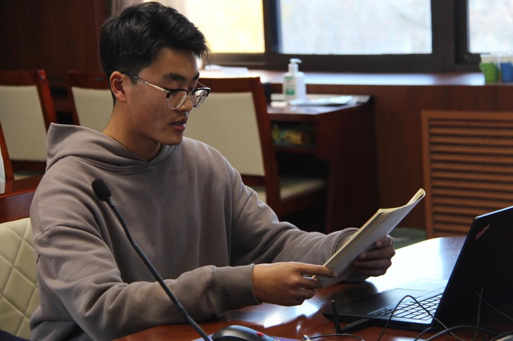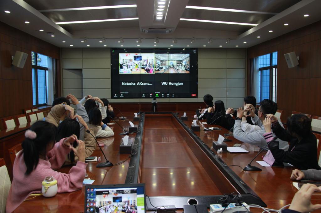 自由发言环节,两校学生从日常生活、职业规划、个人爱好以及两国文化等方面出发,展开了自由发言和讨论。其中,我校学生代表邵子川、刘楚以及波列斯克国立大学的两名学生代表分别讲述了自己的大学生活,藉此加深对双方校园文化和生活的了解,促进两国同龄人之间的友好交流,展现了双方学子良好的精神风貌和学术水平。最后,于建波博士就此次会议进行了简洁总述,提出了双方继续友好往来、加深学术交流的希冀,欢迎外国友人将来有机会到中国一游。
