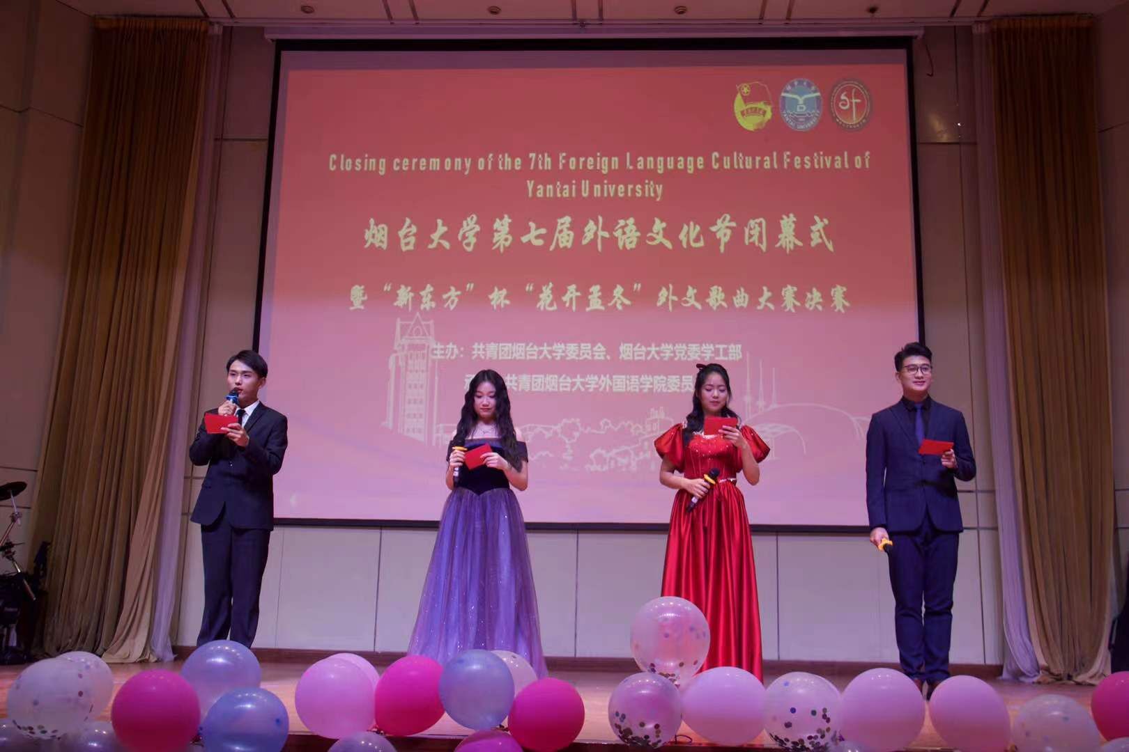 承办的第七届外语文化节闭幕式暨第十四届“花开孟冬”外文歌曲大赛决赛在致道厅举行。党委学生工作部(处)相关负责人、成人tv