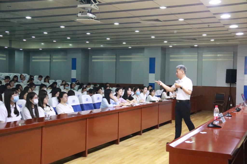 于文以《牢记中国共产党的性质、宗旨和任务,坚持和加强党的领导》为题,围绕“中国共产党的性质和宗旨”“党的最终目标和现阶段的任务”和“坚持和加强党的领导”三个方面进行讲授。他从中华民族历史讲起,通过对中国近代史的发展历程中重要节点的阐述,警醒学生们不忘百年屈辱史,引出“坚强领导核心与政治组织力”对于中华民族屹立不倒的重要性,强调中国共产党的重大历史作用。此外,他还对改革开放以来取得的成就系统阐述,印证了只有中国共产党才能让中国人民站起来,富起来,强起来,并借此来表现中国制度与体制的优越性。于文号召大家要深刻理解和把握“两个确立”的决定性意义,树牢“四个意识”,坚定“四个自信”,做到“两个维护”,始终坚持爱国信党,维护国家和民族的利益,团结起来,振兴中华。